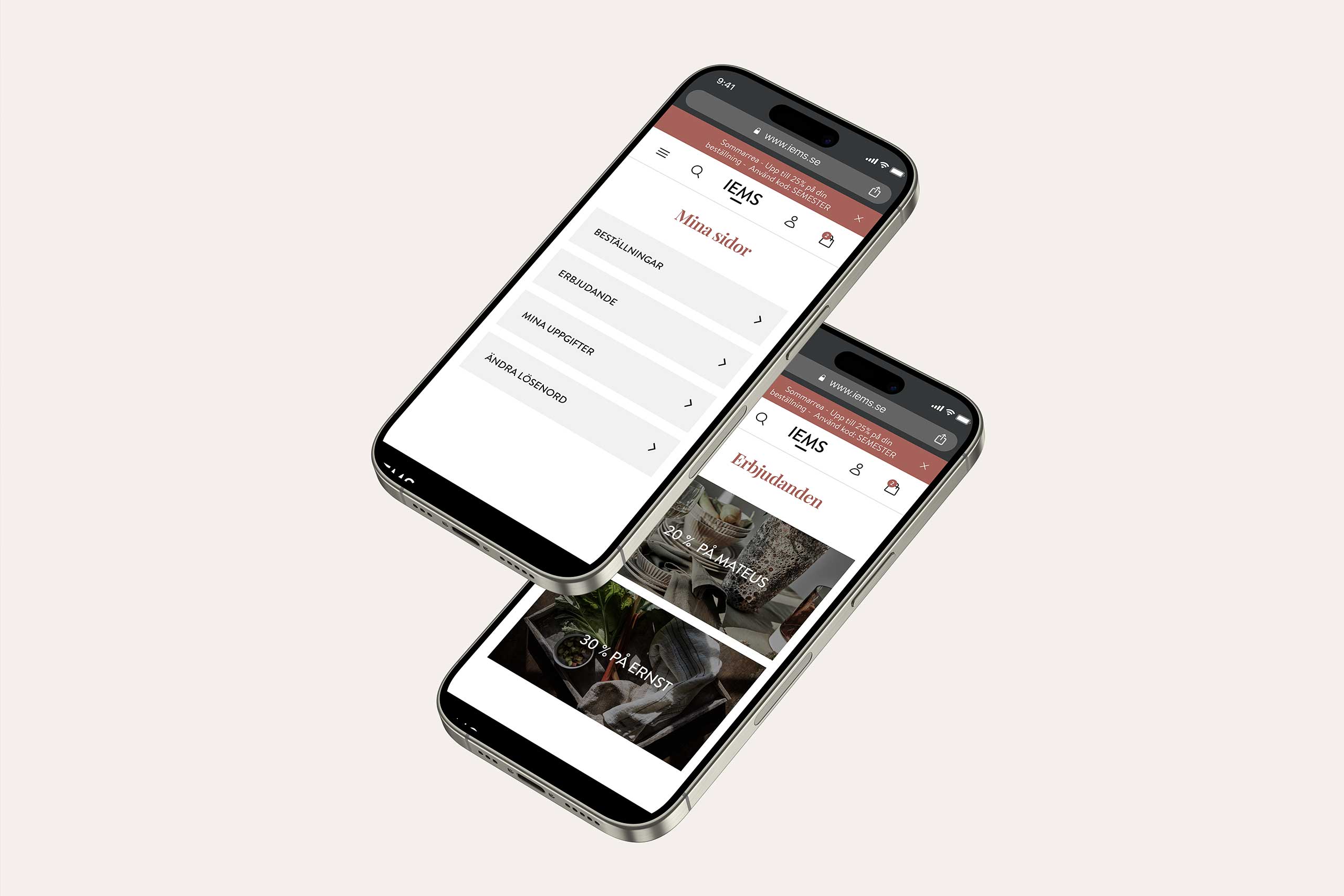 Därför började arbetet med intervjuer, data- och målgruppsanalyser, effektkartläggning och UX. Vi utforskade designuttryck med rätt känsla för IEMS tonalitet och personlighet, som samtidigt möter den inredningskänsliga kunden.